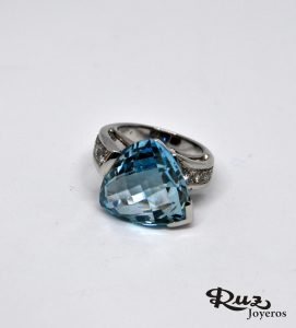 Anillo Topacio y Diamantes Modelo: Sortija oro. Descripción: Sortija oro blanco de 18 quilates con topacio y diamantes. Precio: €1,490.00