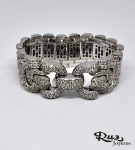 Modelo: Pulsera Diamante. Descripción: Pulsera de oro blanco de 18 quilates con diamantes. Precio: €13,900.00 Sortija Diamante