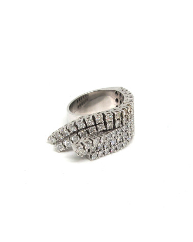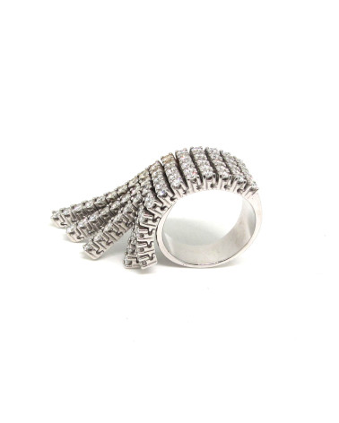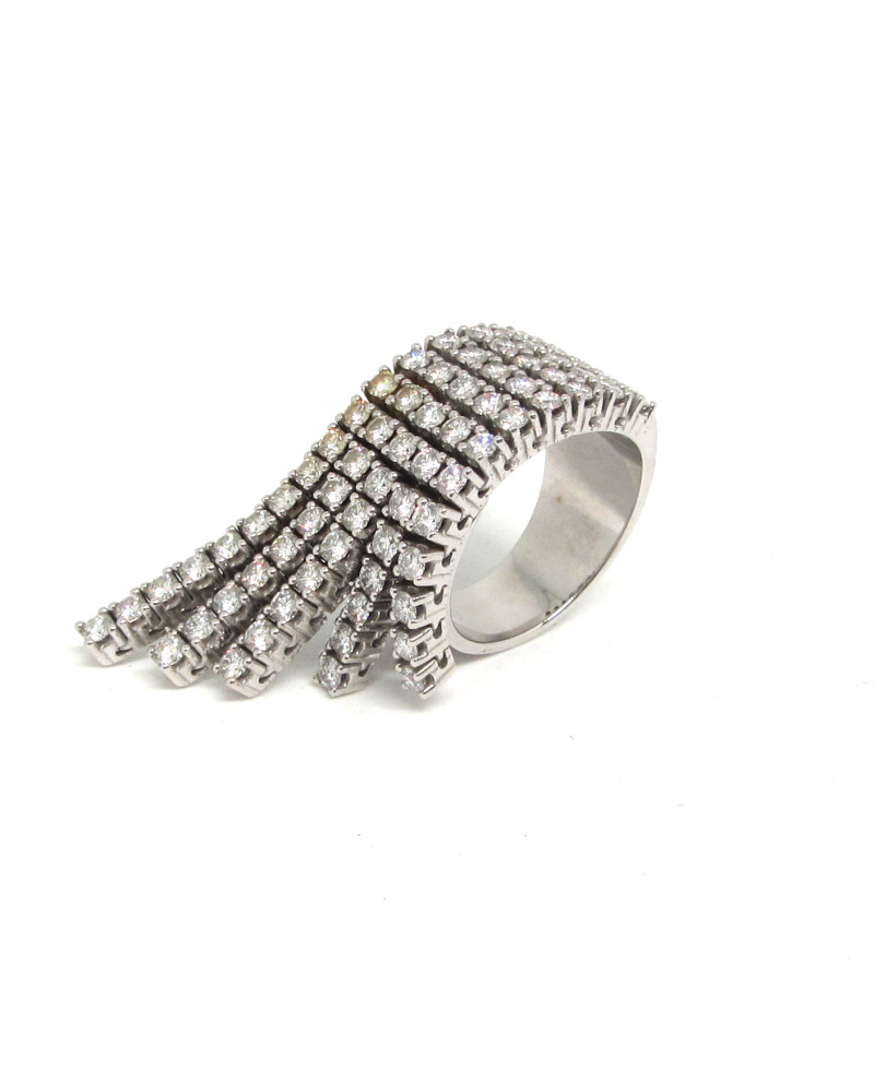 - Sortija de oro blanco con brillantes en forma de abanico.