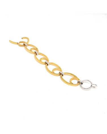 - Pulsera de la marca Pesavento en oro amarillo y blanco de eslabones ovalados con pave de brillantes.