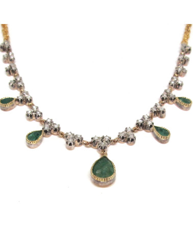 - Collar en oro amarillo con esmeraldas y diamantes.