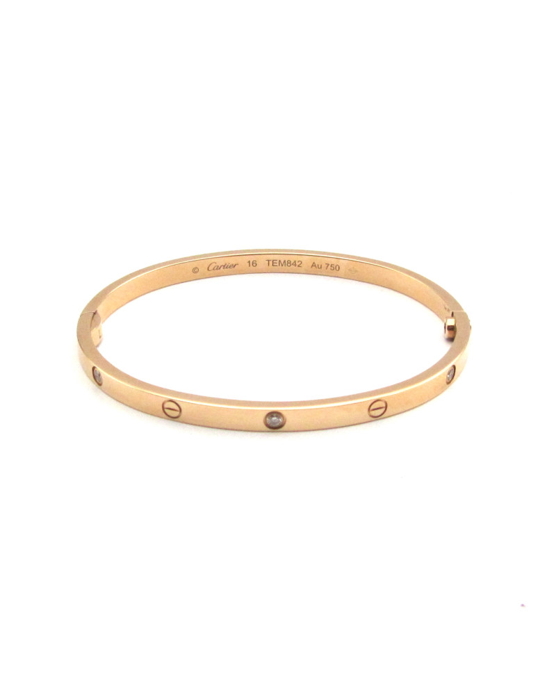 - Pulsera Cartier modelo Love en oro rosa con 6 diamantes.