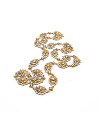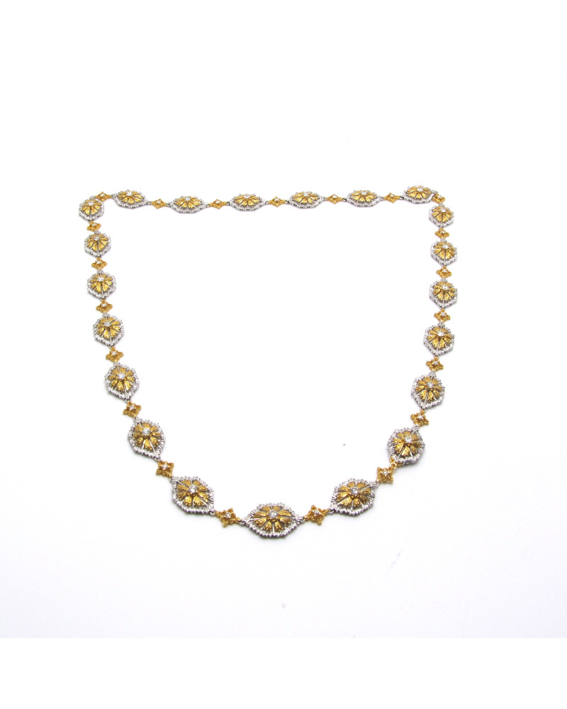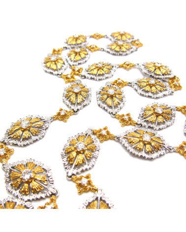 - Collar bicolor con eslabones flor con brillantes.
