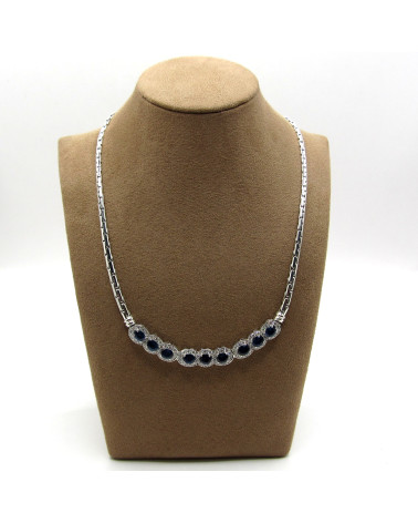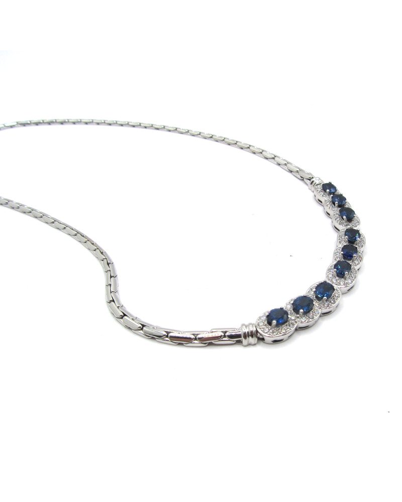 - Gargantilla de oro blanco con diamantes y zafiros.