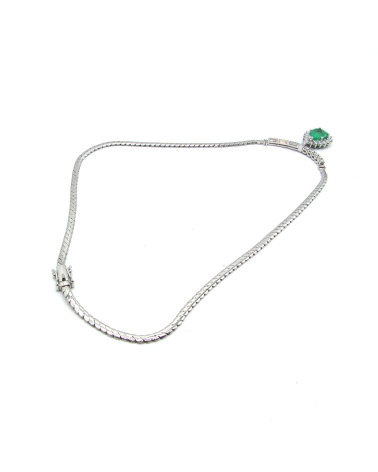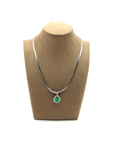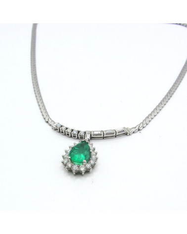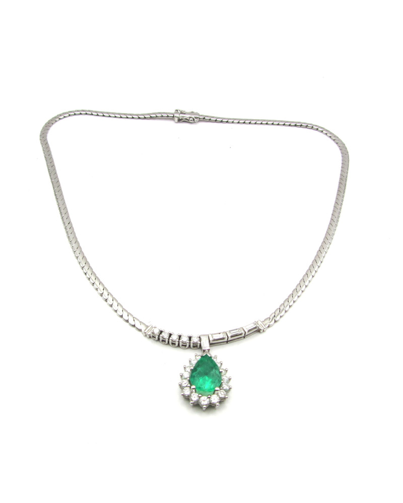 - Collar de oro blanco con diamantes y lagrima de esmeralda.