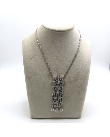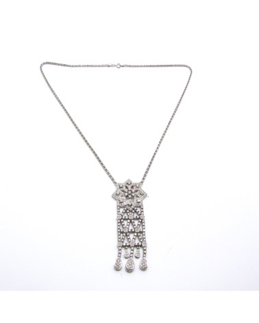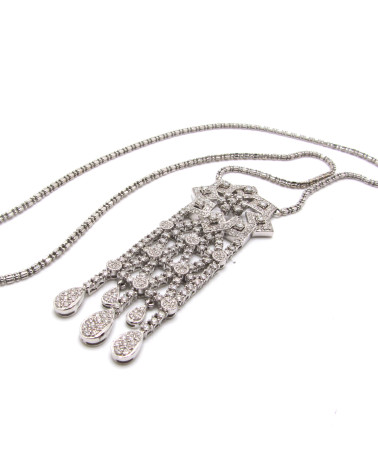 - Collar de oro blanco con motivo central de diamantes.