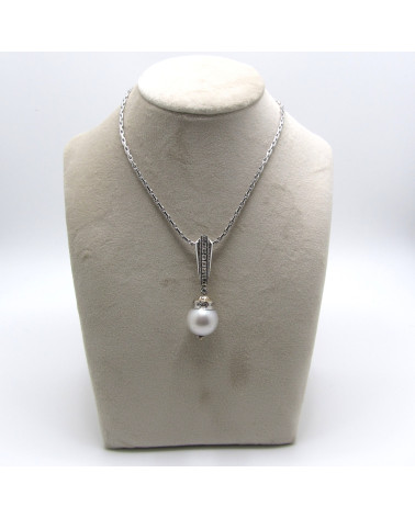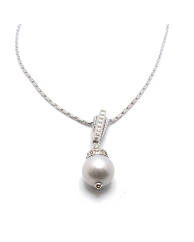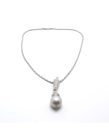 - Collar de oro blanco con congante de brillantes y perla blanca.