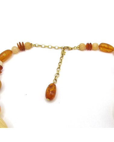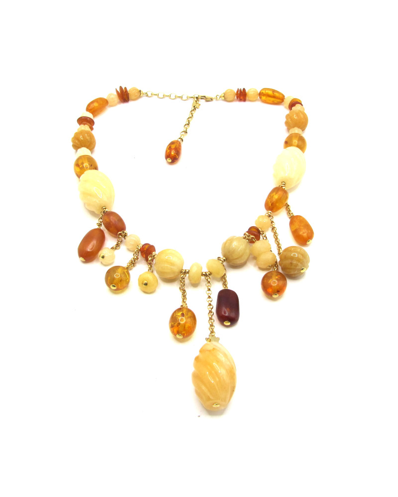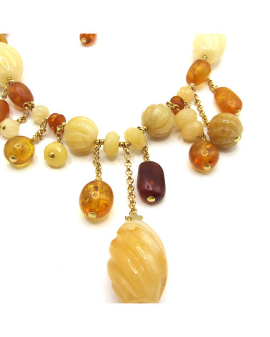 - Collar de oro amarillo con ámbar y calcedonia.